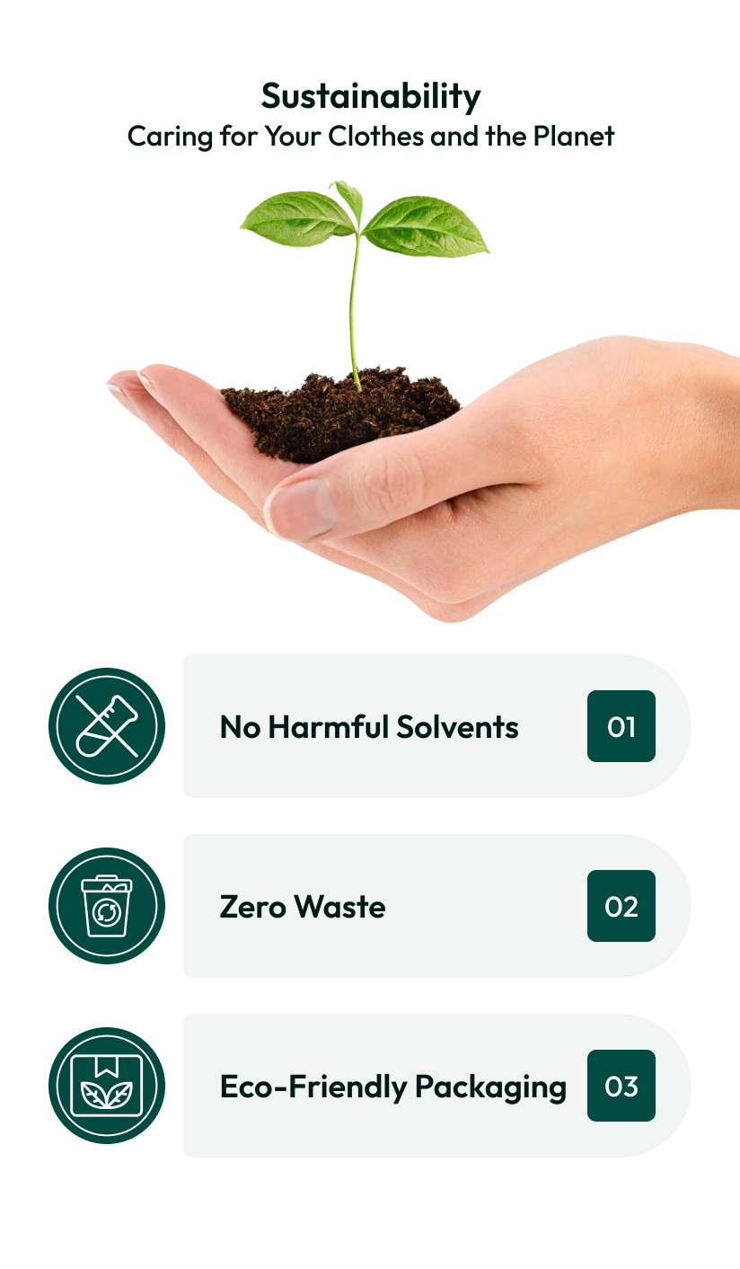 Unlike PERC-based dry cleaning, our solution is safer for skin and the planet.
